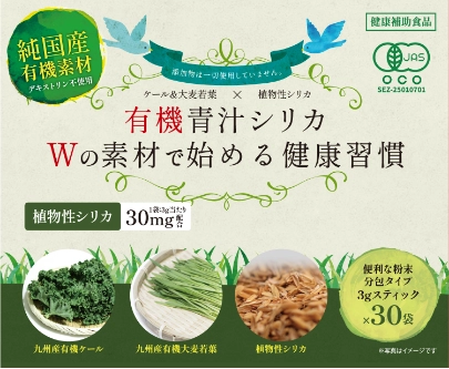 本製品はケールと同様に栄養成分が豊富な大麦若葉と植物性シリカを配合しています。
